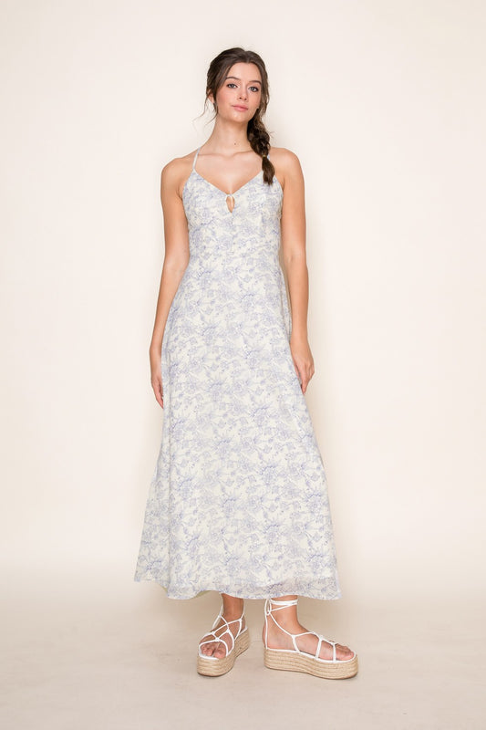Whimsical Floral Tie-shoulder Maxi Dress