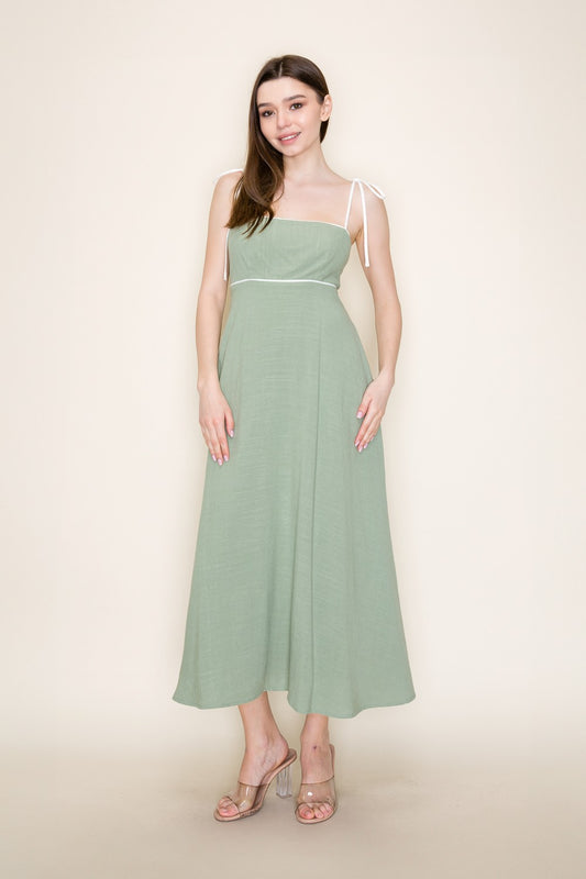 Delightful Linen Tie Shoulder Midi Dress