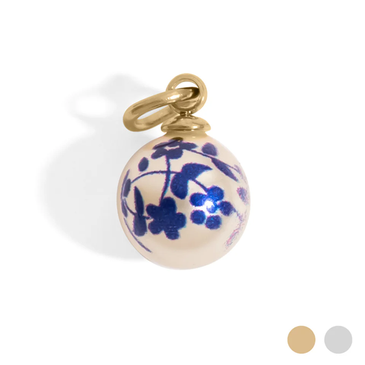 18K Gold PVD Stainless Steel Floral Printed Pearl