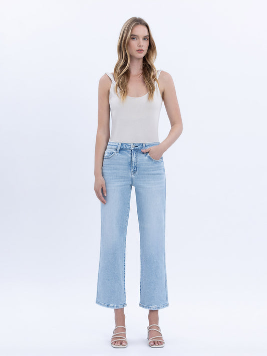 High Rise Light Wash Crop Slim Wide Leg Jeans