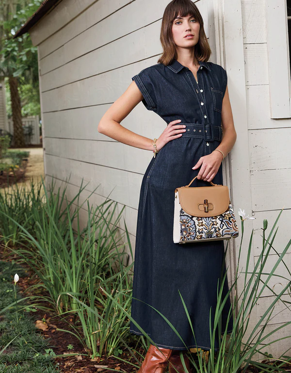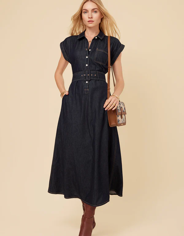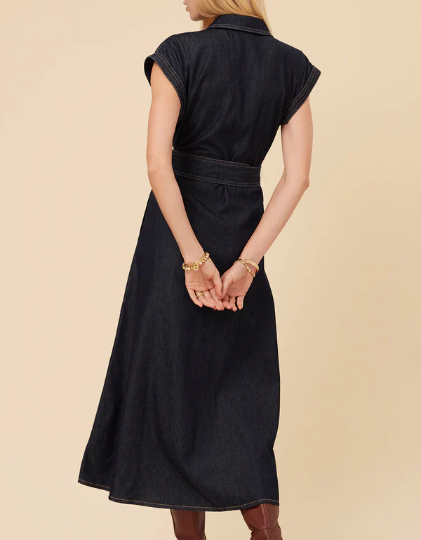 Libbie Denim Midi Dress Dark Bayou Rinse Wash