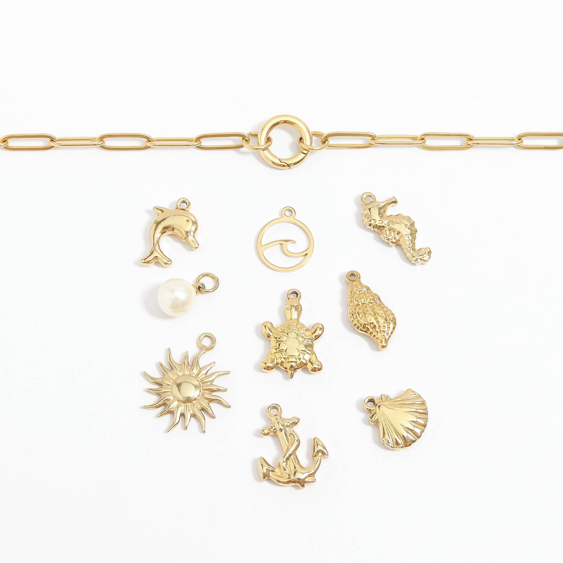 Help your customers customize the perfect sentimental charm bracelet or charm necklace with our NEW clamshell charm. The Clam Shell charm makes the perfect addition to your charm bars all season long! Made with our proprietary blend of surgical-grade 18K Gold PVD-coated stainless steel designed for everyday wear, your customers have quality, style, and comfort to cherish for years to come!