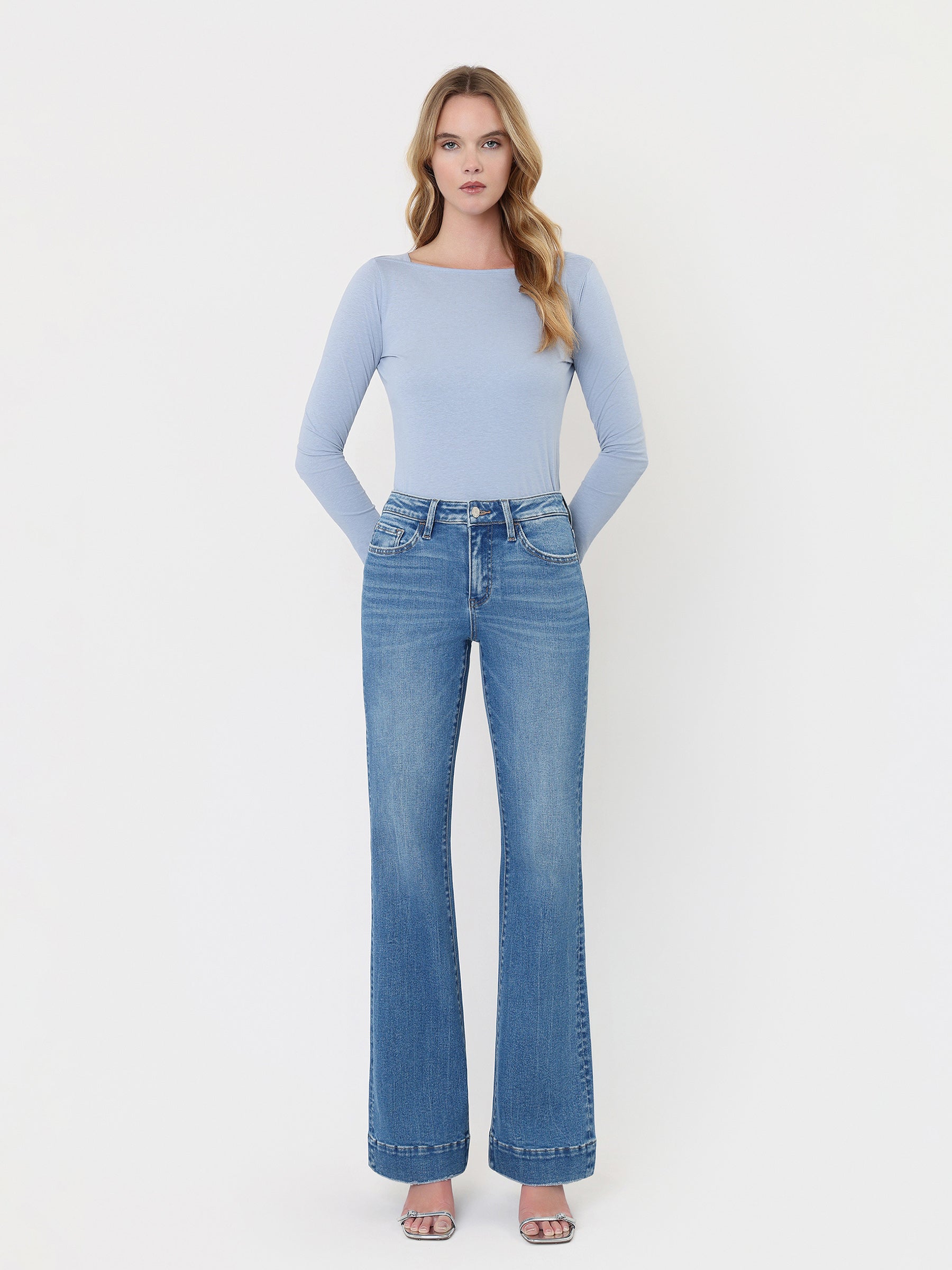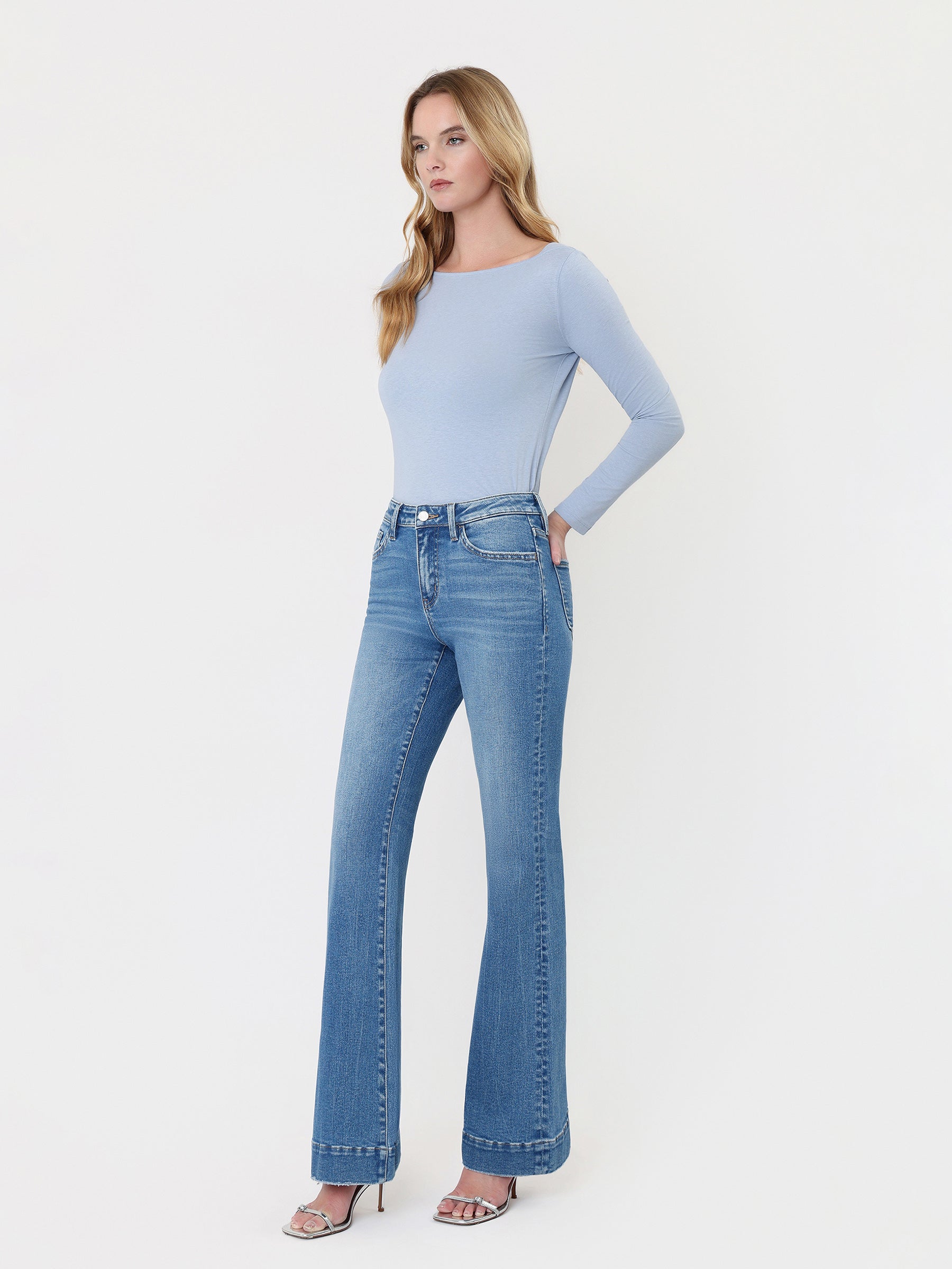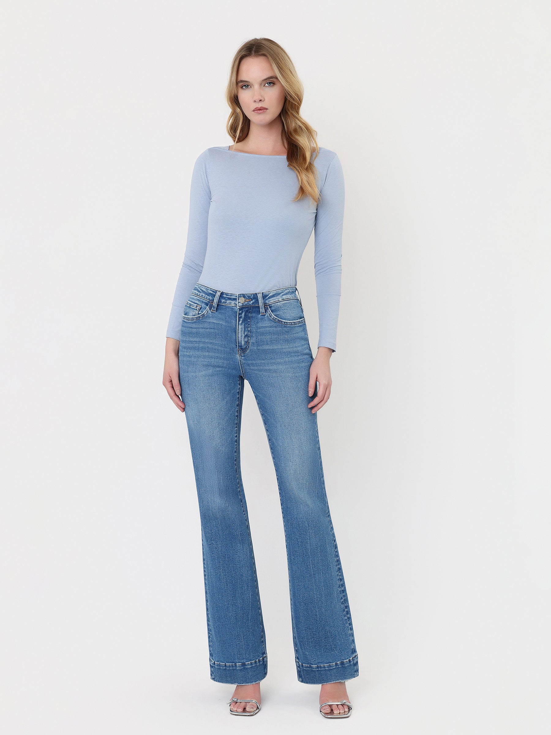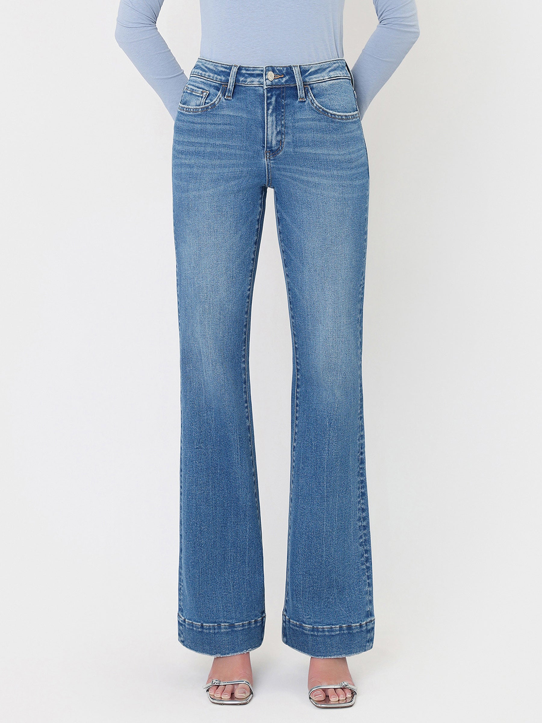 High Rise Trouser Hem Relaxed Flare Jeans