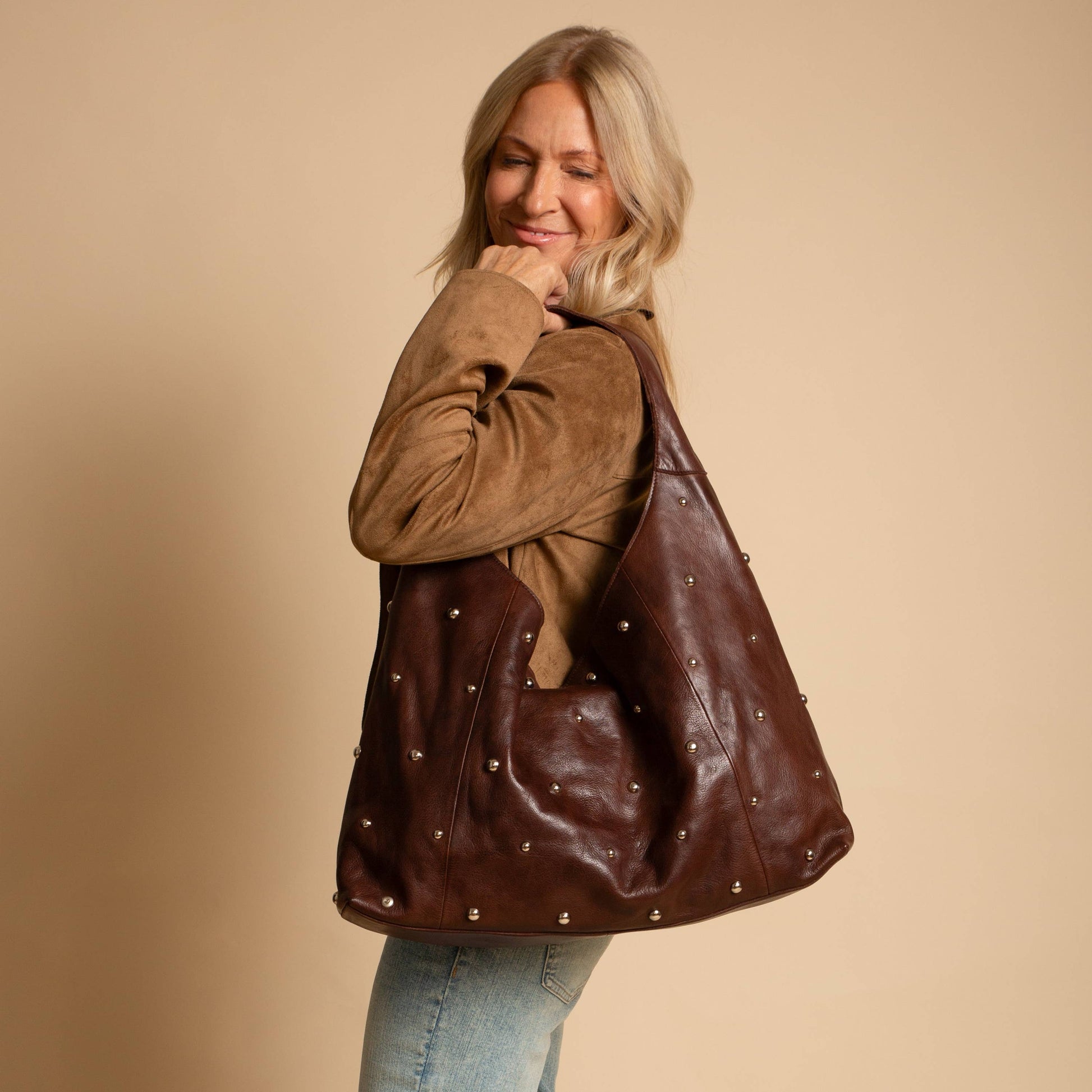 Made to age beautifully, the Lindsey Studded Tote develops a rich patina over time, turning it into a cherished piece.