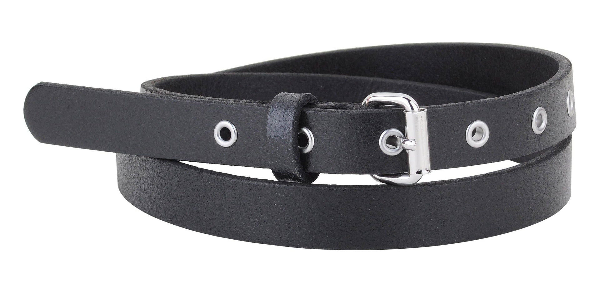 This skinny grommet belt made with genuine leather and styled with a small rectangle silver buckle is a classic piece that is versatile and timeless. Its silver eyelet hardware is minimal, but just enough to add a pop to your outfit. Wear this skinny grommet silver buckle belt with your jeans or skirts or size down to style as a waist belt with your dress or cardigan. This belt's versatility and neutral tone options of black, tan, and olive makes this belt a wholesale and boutique favorite.
